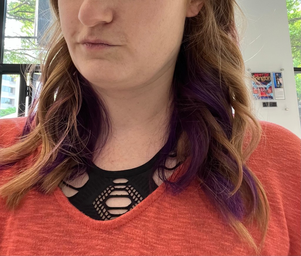 I dyed my hair a different color. (Rather, I went to a hair salon and had some of my hair dyed, but same difference.) It’s just a bit on the underside, not too crazy. My entire life, I swore that was one thing I would never do. I’m in my thirties now and wanted to do something fun and new. I’d been thinking about it since my last hair cut several months ago. But the final push I needed was hearing the news that my ex-boyfriend got engaged.