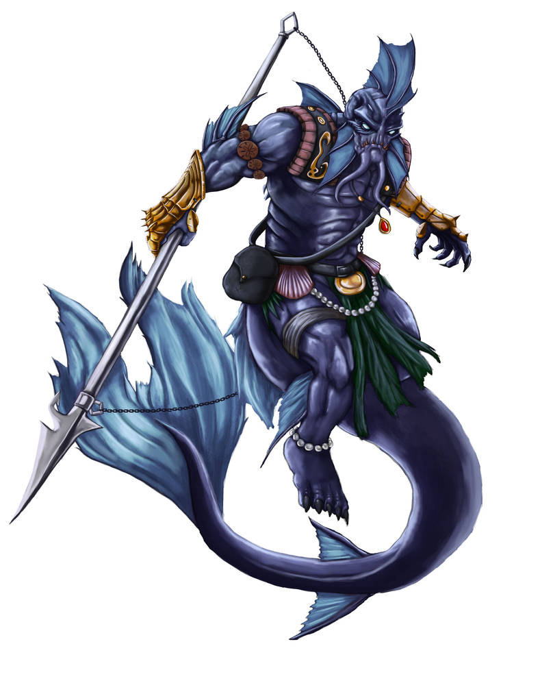 Issa calls the group together and gives each person the ability to breathe underwater for the next eight hours. They jump into the water and swim over. Vola (half-orc wizard), Zelena (elf wizard), and Phoebe climb onboard the deck of the ship and are immediately ambushed by merrow who jump out from behind the dead bodies and the broken mast! Merrow are mermen, men who live underwater and have gills and fins and a long tail in addition to two arms and two legs. They are often hostile to people who live on the surface. One of the merrow pulls out a wand and shoots a couple magic missiles at Zelena. “Ouch!” she yells and shoots her own magic missile back at him. Phoebe pulls out her broadsword and starts hacking away at the merrow closest to her. Vola bends down to inspect the sailors. They are cold to the touch—definitely dead.